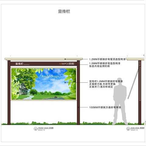 住宅小區(qū)標(biāo)識(shí)主要內(nèi)容有:多項(xiàng)指示牌,樓棟牌,樓層牌,信報(bào)箱,停車場(chǎng)指示牌,地面擺放警示牌,公告牌,總導(dǎo)覽,環(huán)保垃圾桶等。