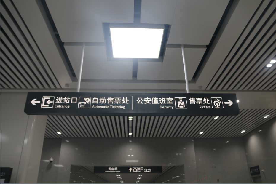 導(dǎo)向標(biāo)識(shí)系統(tǒng)的第一原則,為引導(dǎo)旅客到達(dá)指定目的地的作用。在大量客流匯集的站廳與出入口的位置,標(biāo)識(shí)的設(shè)置安全性顯得尤為重要。為確保旅客的人身安全與行車車輛安全,導(dǎo)向標(biāo)識(shí)的設(shè)計(jì)必須具備材料安全、結(jié)構(gòu)安全、安裝安全、消防安全、視覺(jué)安全于一體才能實(shí)現(xiàn)人性化的設(shè)計(jì)理念。